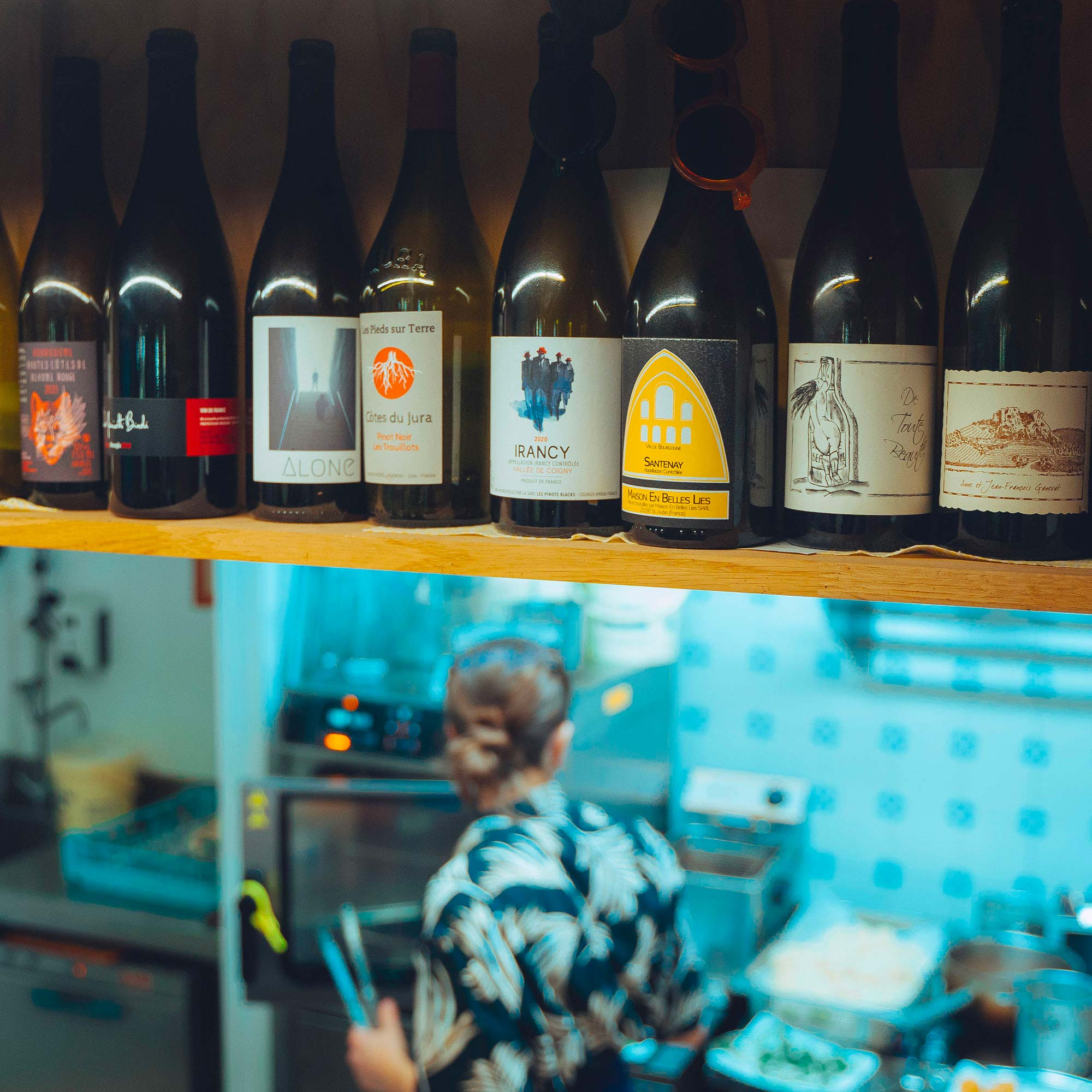 Loulou aux manettes du bistrot, cuisine conviviale, canaille et saisonnière ; bien manger et bien boire ; sélection changeante de canons.